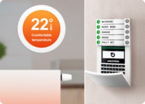 Control both the alarm and the heating in your home from one system. Use this capability to have the temperature switched from comfort to economy after activating your alarm.